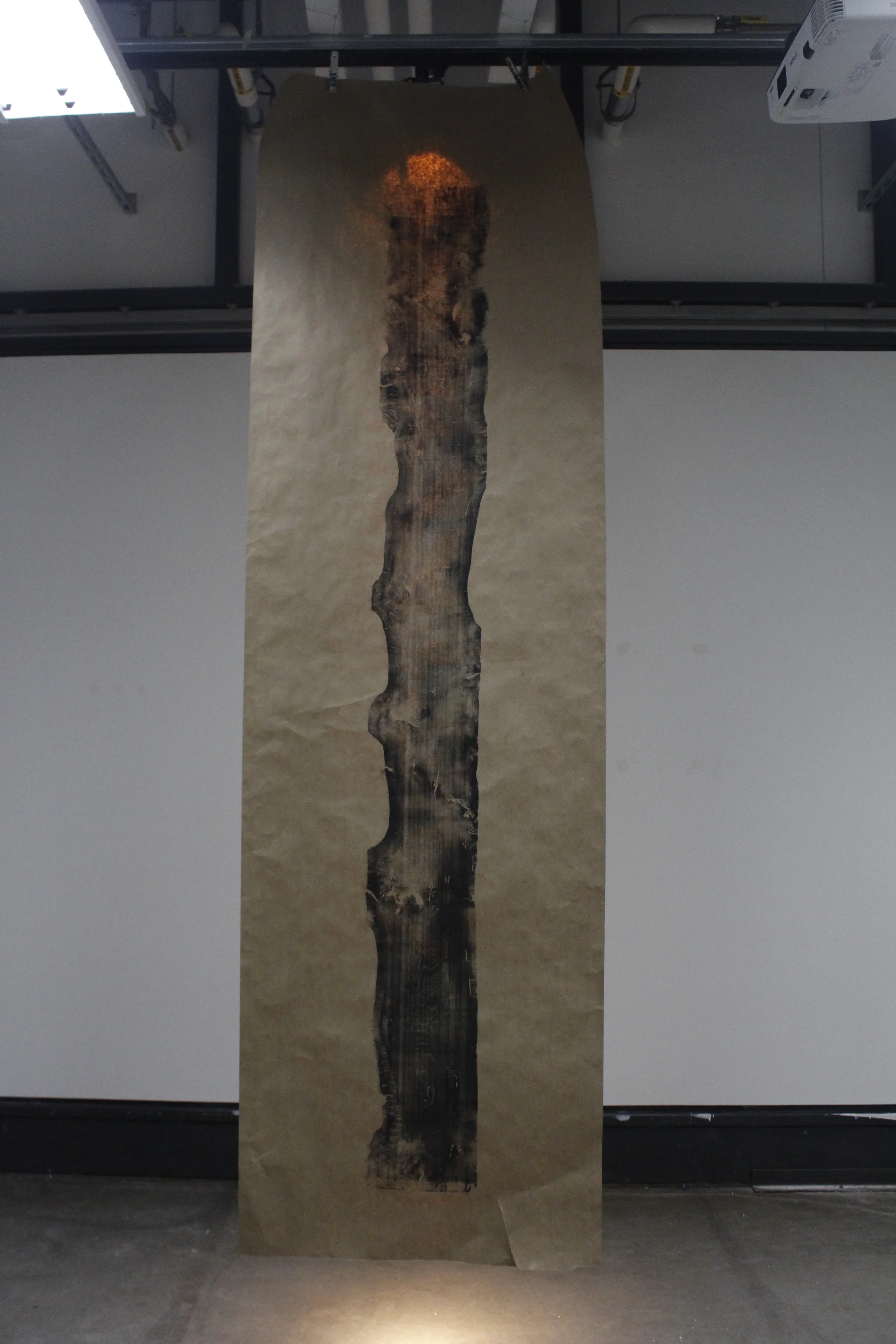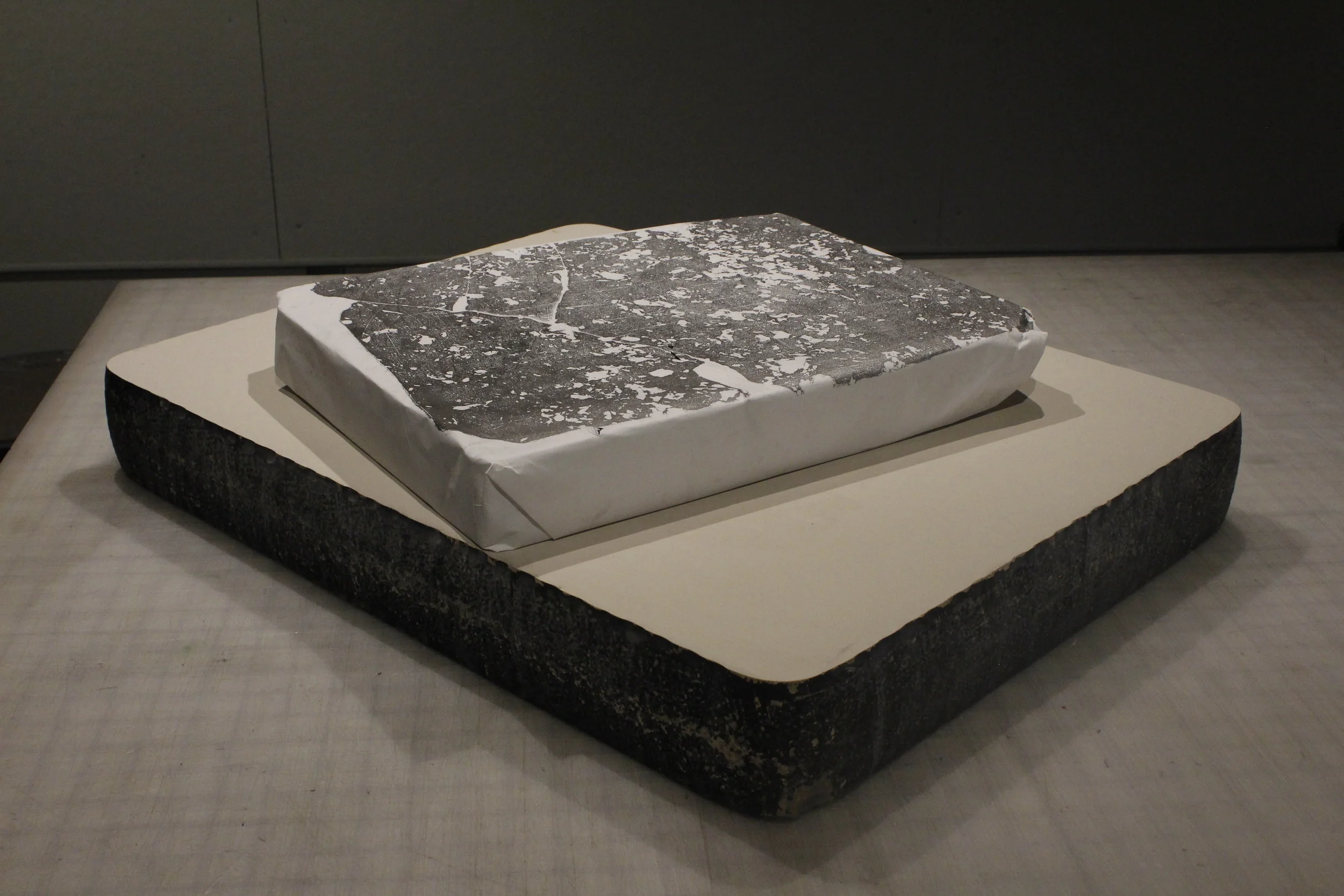 Relief print of the metal plate from Florals in Spring printed on the drafting paper used to shape out the piece